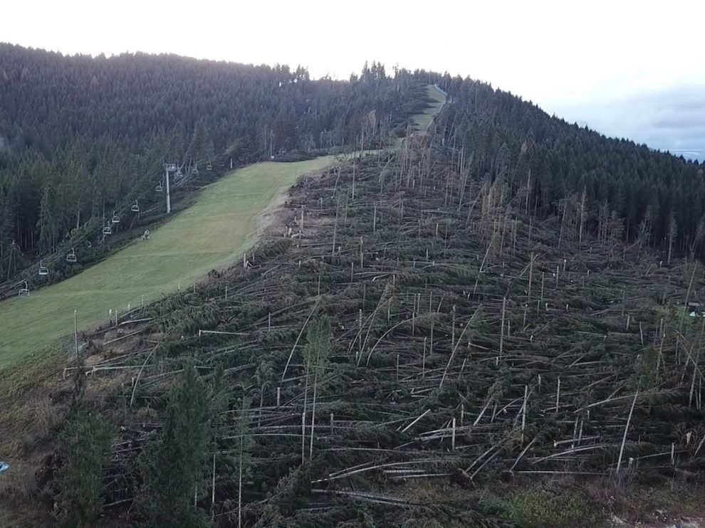 La circostanza ha fatto inizialmente temere anche per l’avvio della stagione invernale: piste da sci invase da alberi, tronchi e rami sui cavi e sui piloni degli impianti di risalita: alcune fotografie emblematiche documentano ciò che mai si sarebbe immaginato.