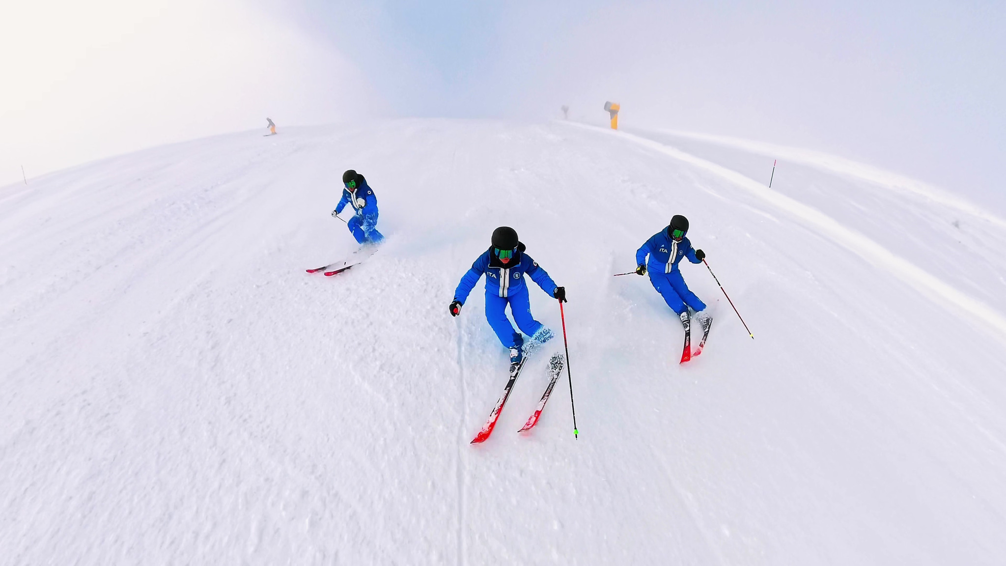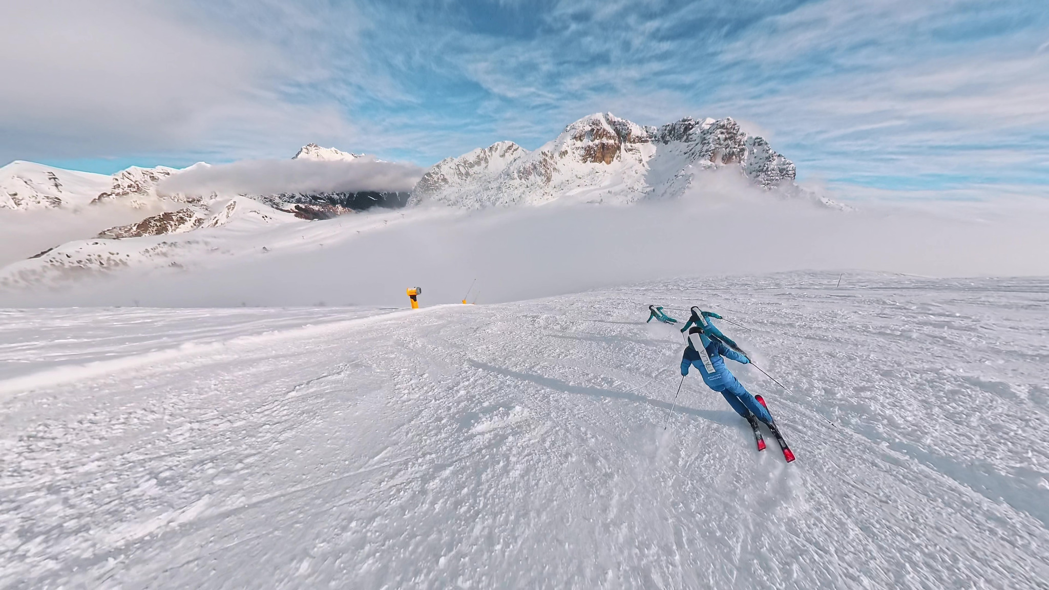 Un elemento evidenziato durante la giornata di test riguarda la capacità della nuova struttura di mantenere continuità di contatto lamina-neve anche in presenza di variazioni del manto. La piattaforma appare stabile e compatta sotto il piede, ma al tempo stesso meno rigida nella risposta iniziale rispetto a impostazioni puramente “gara FIS”.