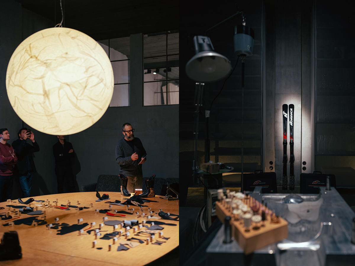 Quando Zoran Filicic prende la parola, l’istinto è quello di prepararsi a una telecronaca. Ma davanti non c’è una pista, né atleti in riscaldamento. Manca anche Varetta, l’inseparabile riferimento tecnico. Al suo posto, al centro del loft Ampola 18 di Milano, c’è un enorme tavolo ovale: sopra, i primi scarponi Nordica degli anni Trenta, ancora segnati dal cuoio e dal tempo; poco più in là, una scarpetta moderna smontata in decine di componenti. Accanto a ciascun elemento, un semplice tappo di sughero.