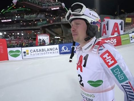 Atle Lie McGrath guida la prima manche dello slalom di Coppa del Mondo sulla Planai con il tempo di 53”12. Il norvegese costruisce il riferimento...