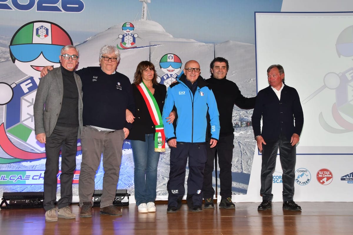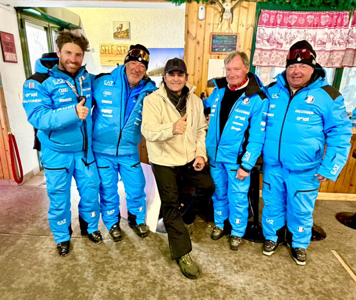 Gran parte del vertice dello sci Azzurro, specialmente il settore giovanile Fisi, presente sul campo: da sinistra, Alfonso Trilli, Paolo Deflorian, Alberto Tomba, ospite dell’evento, Flavio Roda e Paolo Colombo Paolo Responsabile children italia