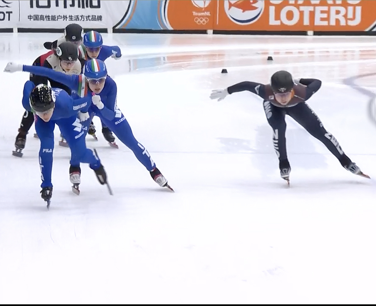In finale Fontana si presenta insieme a Arianna Sighel ed Elisa Confortola, trovandosi a duellare anche con le atlete di casa e con le polacche. Proprio Confortola prova l’attacco nell’ultimo giro, ma nel tentativo di superare Fontana perde l’equilibrio in curva e finisce contro le balaustre. L’episodio apre la strada all’olandese Zoe Florence Deltrap e ad Arianna Sighel, che conquista così il bronzo, mentre Confortola chiude sesta. Per Fontana è una vittoria netta, costruita con controllo e autorità: stato di forma eccellente, sensazione di imbattibilità.
