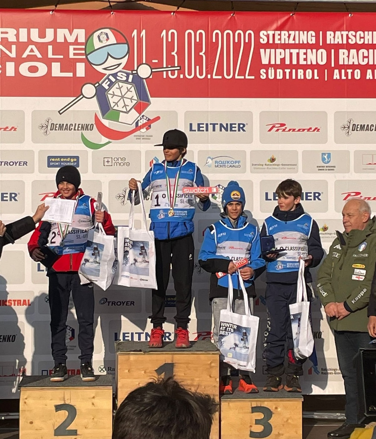 Il terzo classificato ha potuto festeggiare la seconda medaglia al Critierium Nazionale Cuccioli: Giovanni Ceccarelli ha vinto il bronzo nello skicross il giorno dopo essersi imposto nello slalom under 12.