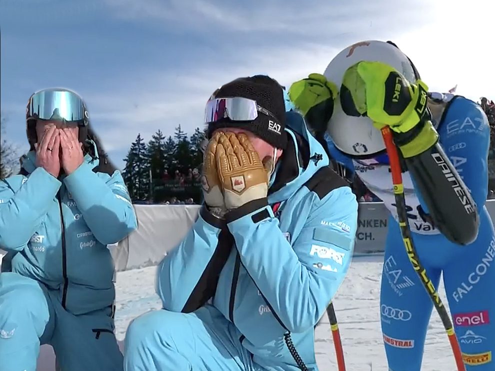 La gara cambia volto con la discesa di Laura Pirovano. L’azzurra è la più veloce nei settori centrali, miglior tempo nel secondo e nel terzo settore, sempre davanti fino alla penultima porta. L’azione è continua, aggressiva, tecnicamente pulita. Una gara eccezionale ma fino alla penultima porta arriva lo sbilanciamento: Pirovano salta la linea, perde l’appoggio e finisce fuori. In quel punto aveva già accumulato un margine ampio, sufficiente per vincere la gara. L’errore cancella una vittoria certa e quello che sarebbe stato il primo podio in Coppa del Mondo.