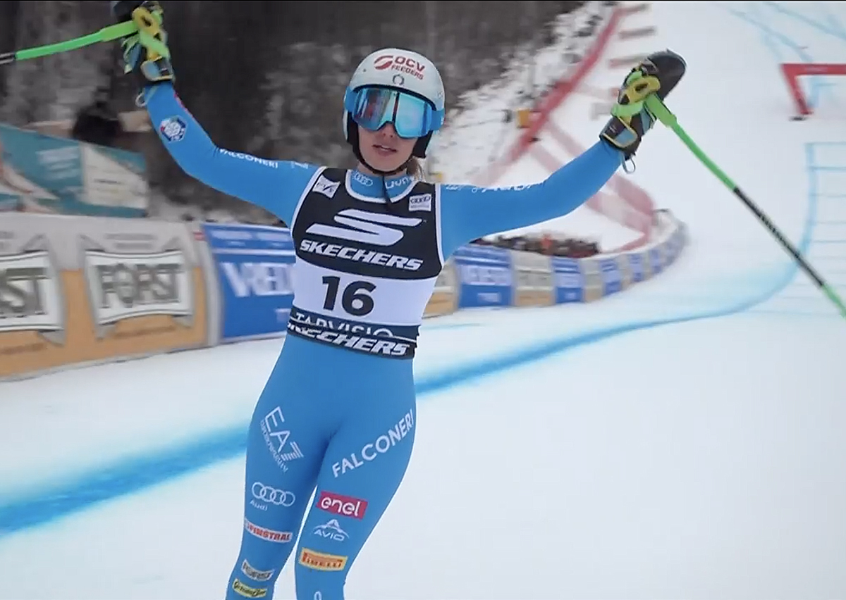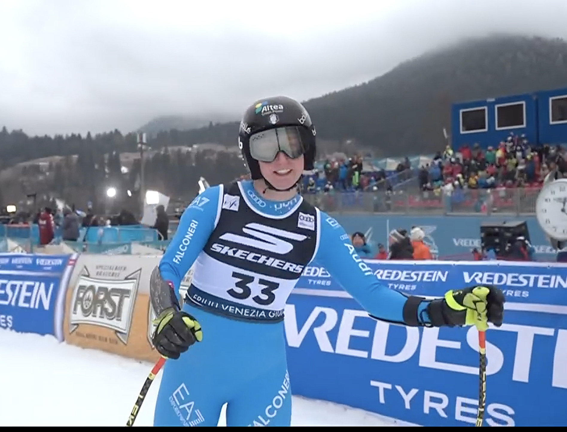 È il gran giorno della giovane tedesca Emma Aicher, 22 anni al suo quarto successo in Coppa del Mondo (settimo podio). Al traguardo allarga le braccia Lindsey Vonn, che scia sulla stessa linea ma perde la gara sul finale, finendo alle spalle di Emma per 27/100 quando le era davanti fino al terzo settore. Il terzo gradino del podio lo firma Ester Ledecka, che conclude a 9 decimi. Una gran bella soddisfazione per il grande Much Mair, chiamato ad allenarla dalla stessa Ester.