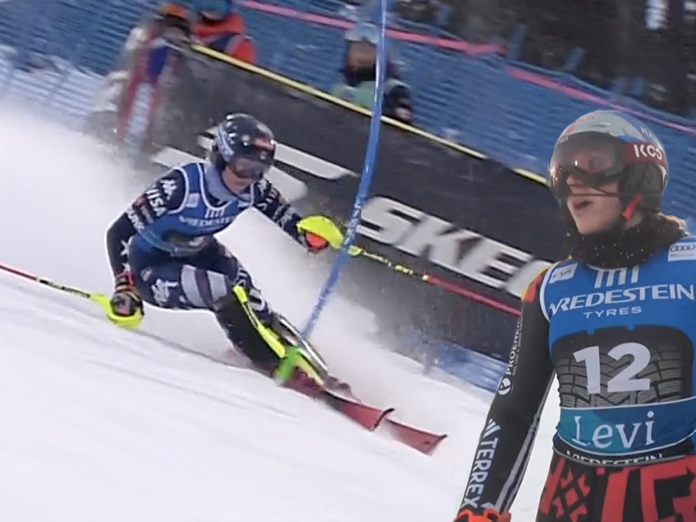 Mikaela Shiffrin riparte da dove aveva lasciato: davanti a tutte. La prima manche dello slalom di Levi si chiude con la statunitense saldamente al comando in 56”08, un tempo che non lascia spazio alle interpretazioni. Alle sue spalle, a +1”08, c’è una straordinaria Lara Colturi, brillante nella parte ripida e capace di tenere il passo soltanto dove la pista lo permetteva. Completa il podio provvisorio Lena Dürr, terza a +1”49, precisa, ordinata, regolare come ormai la conosciamo.
