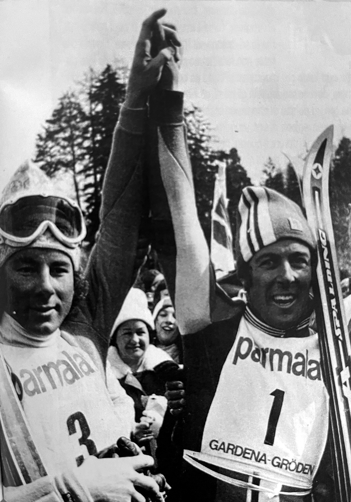 Nell’ultimo slalom gigante disputato a Saalbach il 16 dicembre del 1973 le cose non erano andate bene. Gli austriaci conoscevamo la pista ed erano sostenuti da un pubblico da stadio che tifava Hubert Berchtold, ma soprattutto Hans Hinterseer, il nuovo idolo. Nella notte era venuto giù un metro di neve, brutta storia per noi non abituati a sciare sulla panna montata. Berchtold è stato gigantesco.