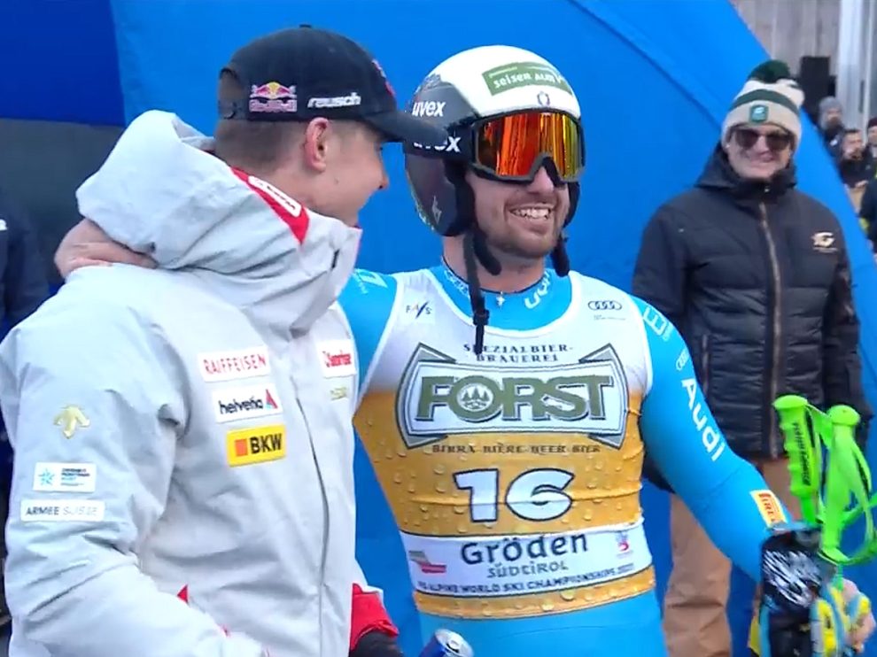 Sul terzo gradino del podio sale Florian Schieder, che trova il risultato anche grazie a una gestione molto pulita dei passaggi chiave. La sua discesa è solida, senza errori evidenti, soprattutto nell’ingresso al Ciaslat e nella compressione. Il podio arriva con un margine minimo: solo due centesimi lo separano dal quarto posto, segno di una gara decisa davvero sui dettagli. Per il 29enne dei Carabinieri si tratta del terzo podio in carriera, dopo le due piazze d’onore conquistate nelle discese di Kitzbühel del 2023 e 2024.