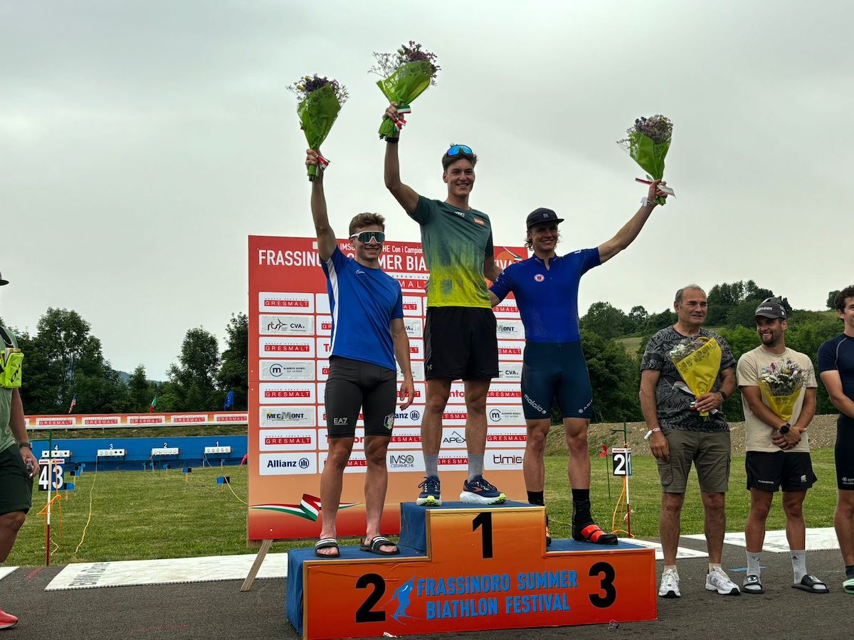 Giovani atleti protagonisti del Frassinoro Summer Biathlon Festival al mattino, con la corsa dedicata alle promesse della disciplina combinata che ha visto la vittoria della squadra intitolata a Eckoff Tiril.