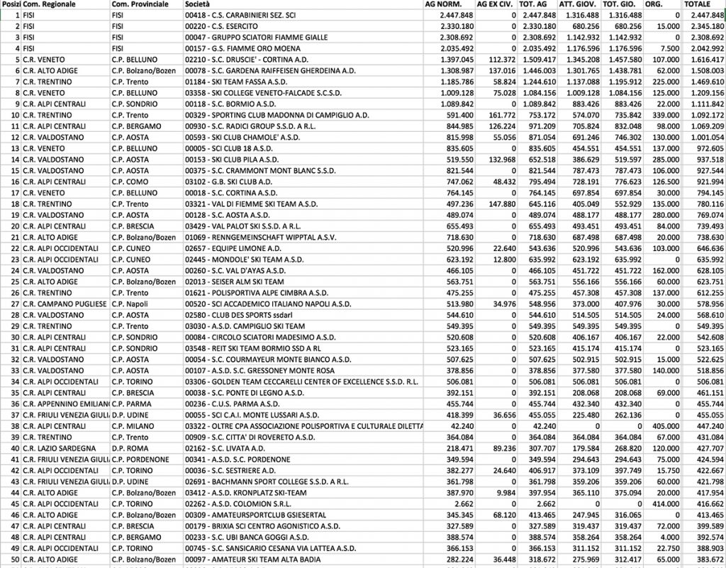 La Fisi ha reso note le graduatorie delle società e c’è grande soddisfazione lo sci Club Druscié Cortina per aver conquistato la vetta escludendo i corpi sportivi militari, categoria dove ha prevalso il CS Carabinieri.