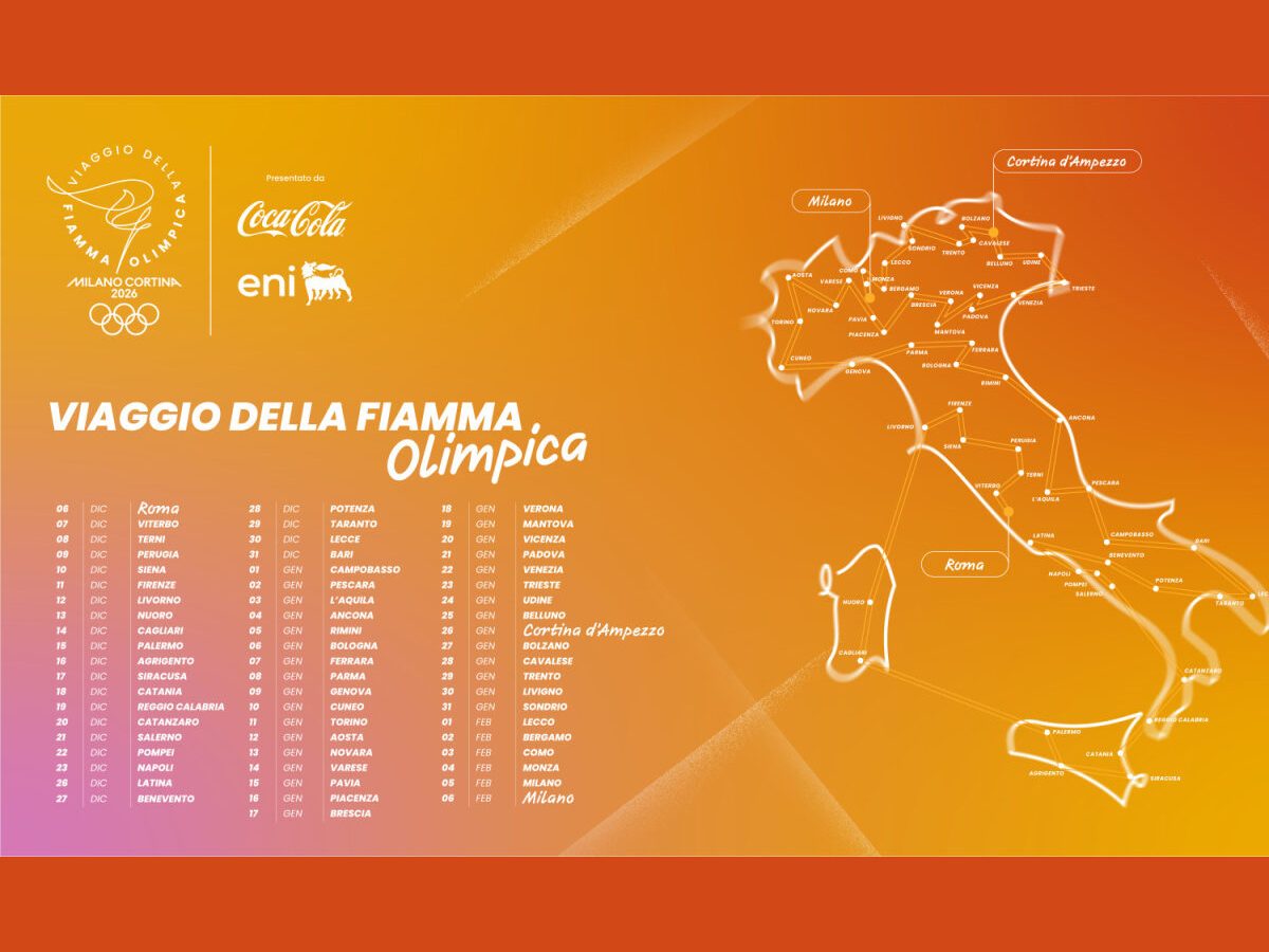 Il viaggio della Fiamma Olimpica di Milano Cortina 2026 è una lunga linea luminosa che attraversa il Paese. Un filo che parte da Roma e si arrampica fino alle Alpi, scendendo e risalendo tra coste, città, valli e borghi, per raccontare un’Italia diversa: unita, partecipata, pronta a vivere l’attesa dei Giochi come una festa collettiva.