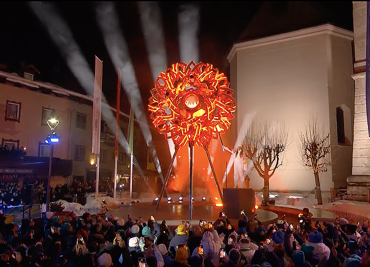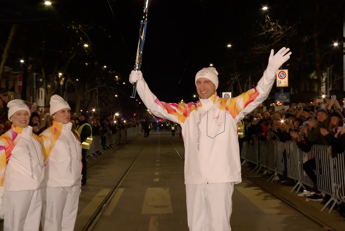 L’ultimo atto si compie nelle strade di Milano e tra le Dolomiti di Cortina, come doveva essere fin dall’inizio. La fiamma avanza tra la gente, portata da Gerda Weissensteiner e Manuela Di Centa: entusiasmo vero, mani tese, sguardi che si riflettono nella torcia-specchio. Il testimone passa a Enrico Fabris, doppio oro a Torino 2006, che conduce il fuoco verso l’Arco della Pace. Un luogo che dice tutto: non trionfo, ma pace; non potere, ma responsabilità.