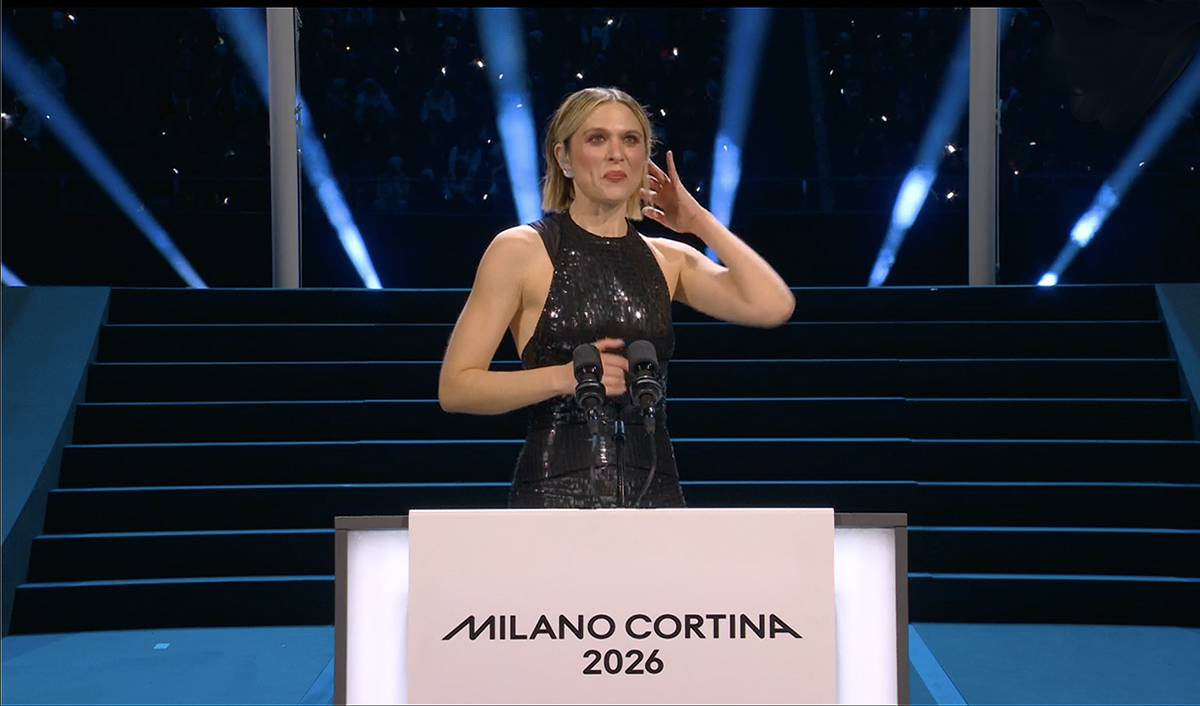 Il senso del quadro è chiaro: prima ancora delle lingue, esistono segni comuni, modi di esprimersi che creano contatto. È un passaggio leggero, ironico, ma tutt’altro che secondario, perché prepara il terreno al finale della cerimonia: l’idea che l’incontro tra culture non passi solo dalla competizione, ma dalla comprensione reciproca. Anche attraverso un gesto.