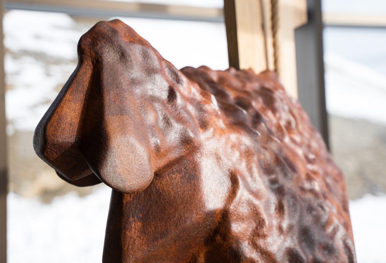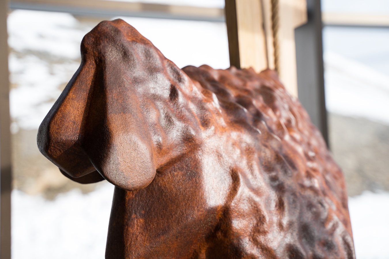 Il dialogo tra città e montagna si esprime anche attraverso l’arte. È già esposta alla Stella di Pila (e rimarrà fino alla fine della stagione invernale) un’opera di Peter Trojer, scultore e autore del simbolo della Fiera di Sant’Orso di quest’anno