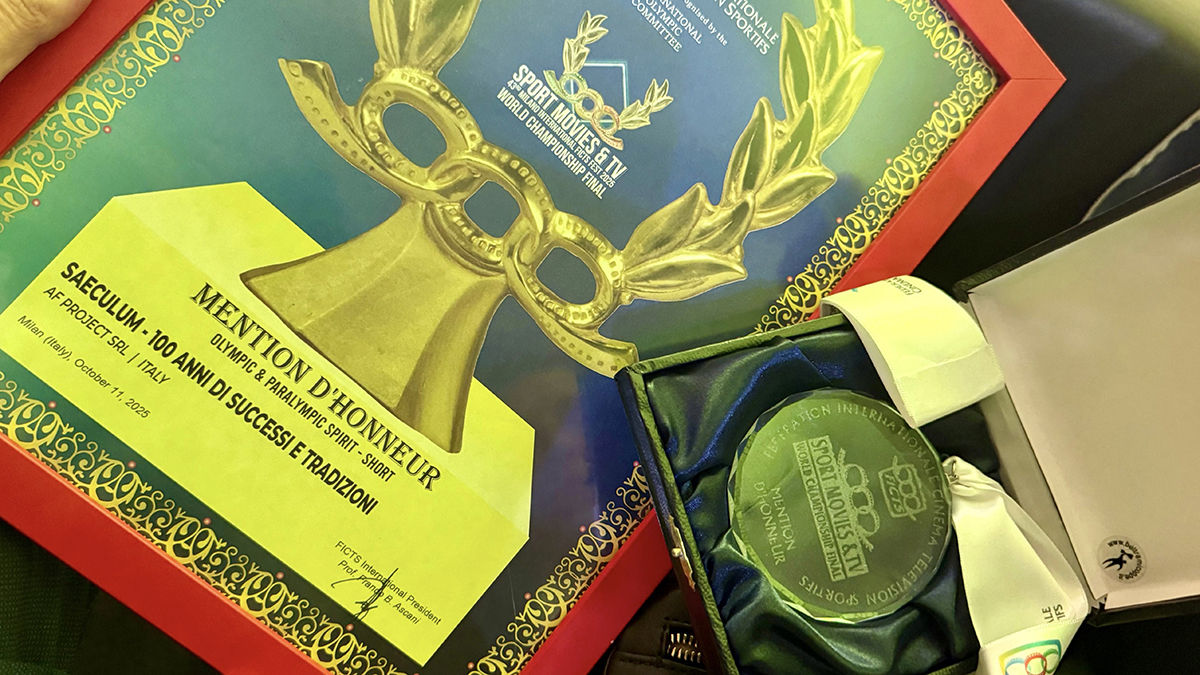 Milano – La storia di un secolo che continua a scorrere come neve viva sulle piste di Predazzo. SAECŬLUM – 100 anni di successi e tradizioni del Gruppo Sciatori Fiamme Gialle ha conquistato la Mention d’Honneur alla 43ª edizione di Sport Movies & TV, la finale mondiale del World FICTS Challenge, riconosciuta dal CIO come il campionato del cinema e della cultura sportiva.