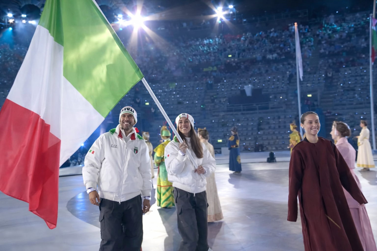 Sfilano le delegazioni dietro la bandiera greca, come da tradizione olimpica. Per ultimi entrano gli azzurri, accolti dall’ovazione dell’Arena. Sul palco le 30 medaglie italiane – 10 ori, 6 argenti, 14 bronzi – simbolo di un’edizione che ha regalato emozioni e imprese memorabili.