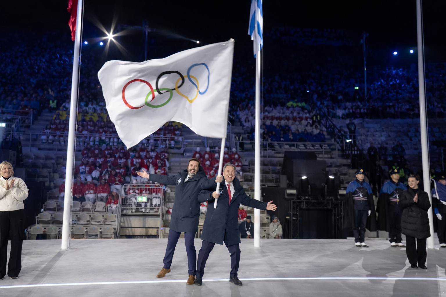 Dopo l’inno greco e l’inno olimpico, arriva il momento più solenne: il passaggio della bandiera alle autorità delle Alpi francesi, che ospiteranno i Giochi del 2030. Risuona la Marsigliese, mentre la presidente del CIO ringrazia l’Italia per “giochi magici” e dà appuntamento a French Alps 2030.