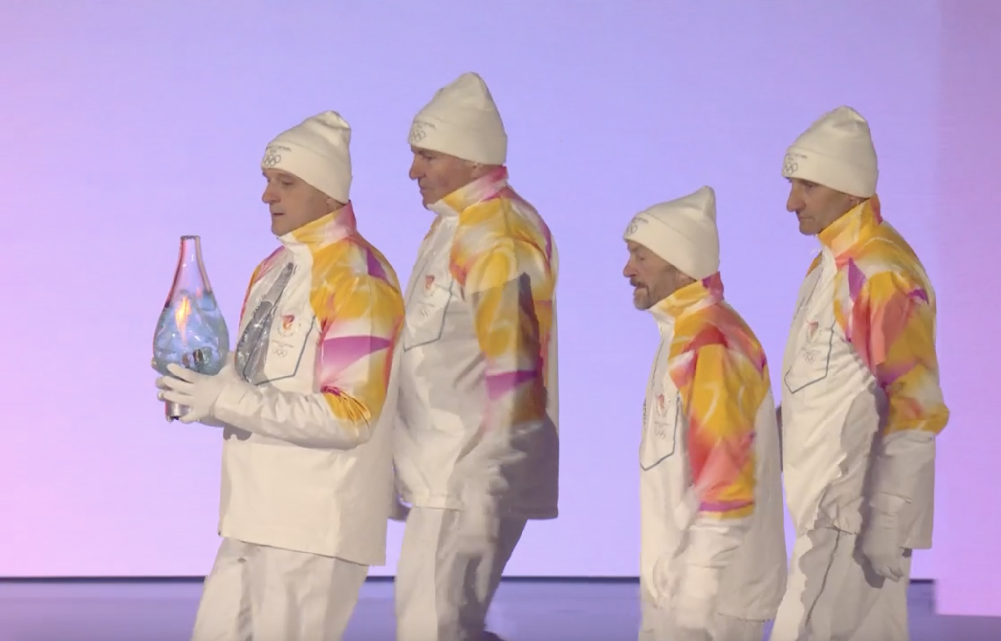 Un video celebra i quasi 20mila volontari arrivati da oltre 70 Paesi. Tra loro anche Mario Gargiulo, 88 anni, già volontario a Cortina 1956. L’Arena balla sulle note di Gabry Ponte, direttore artistico dello spettacolo, mentre gli atleti prendono posto sulle tribune accompagnati dalla musica italiana reinterpretata dai Calibro 35.