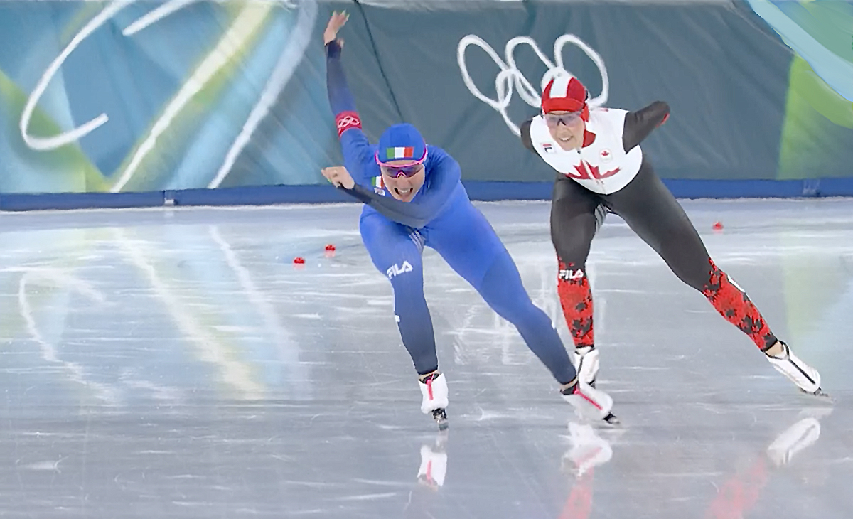 Nel confronto diretto con Valérie Maltais, Lollobrigida non risponde con strappi, ma con continuità. La canadese prova ad aumentare il ritmo nella parte centrale, ma l’azzurra resta compatta, senza sbavature in corsia esterna, e arriva al passaggio di metà gara con una proiezione già da podio.