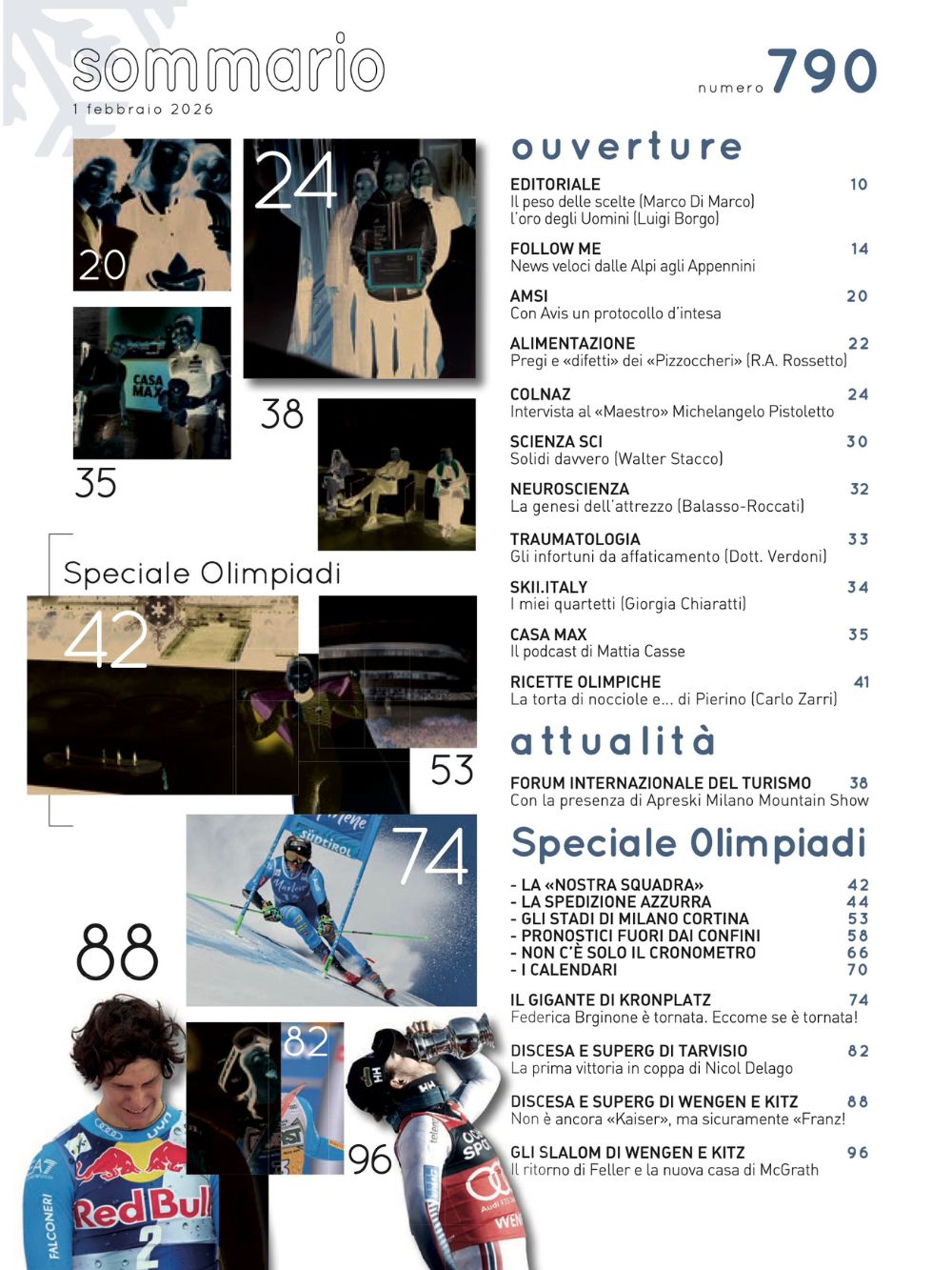Il numero è introdotto da uno Speciale Olimpiadi Milano-Cortina, che raccoglie la presentazione della squadra azzurra, la spedizione, gli stadi, i calendari e una serie di approfondimenti e curiosità utili a orientarsi verso l’evento.