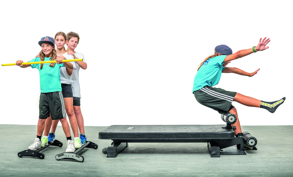 Irene Massarenti (SC Edelweiss), invece esegue, con lo stesso attrezzo ´juniorª uno ´stacco da terraª dove in contemporanea una speciale fascia elastica indica e allena il corretto parallelismo degli arti inferiori.
