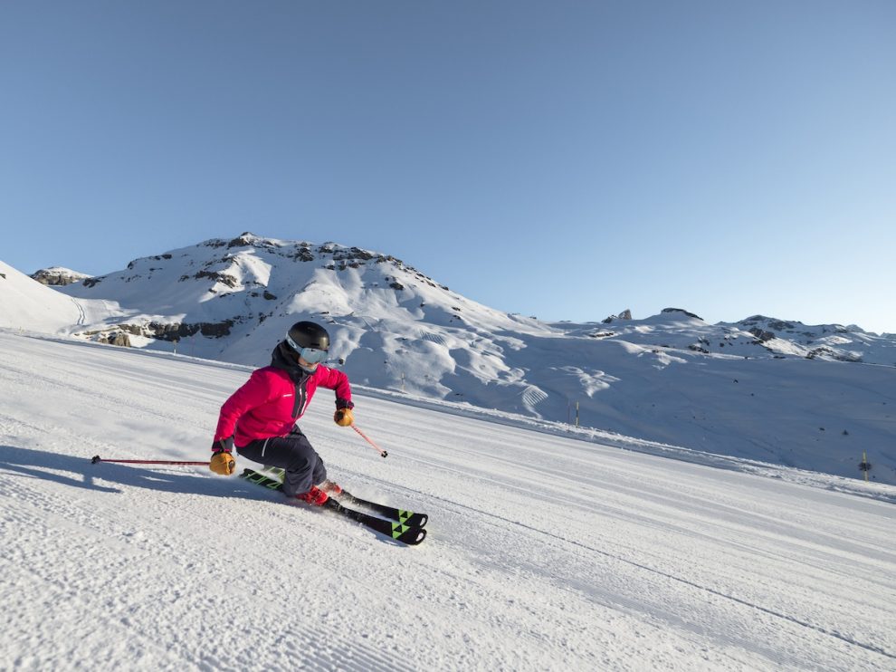 Le piste – molte delle quali esposte a sud – regalano una vista spettacolare sulle Alpi, permettendo di sciare guardando verso vette maestose come quelle del Vallese. In più, la discesa che parte da quasi 3.000 metri (pista Kandahar) garantisce un dislivello significativo e una sciata memorabile.