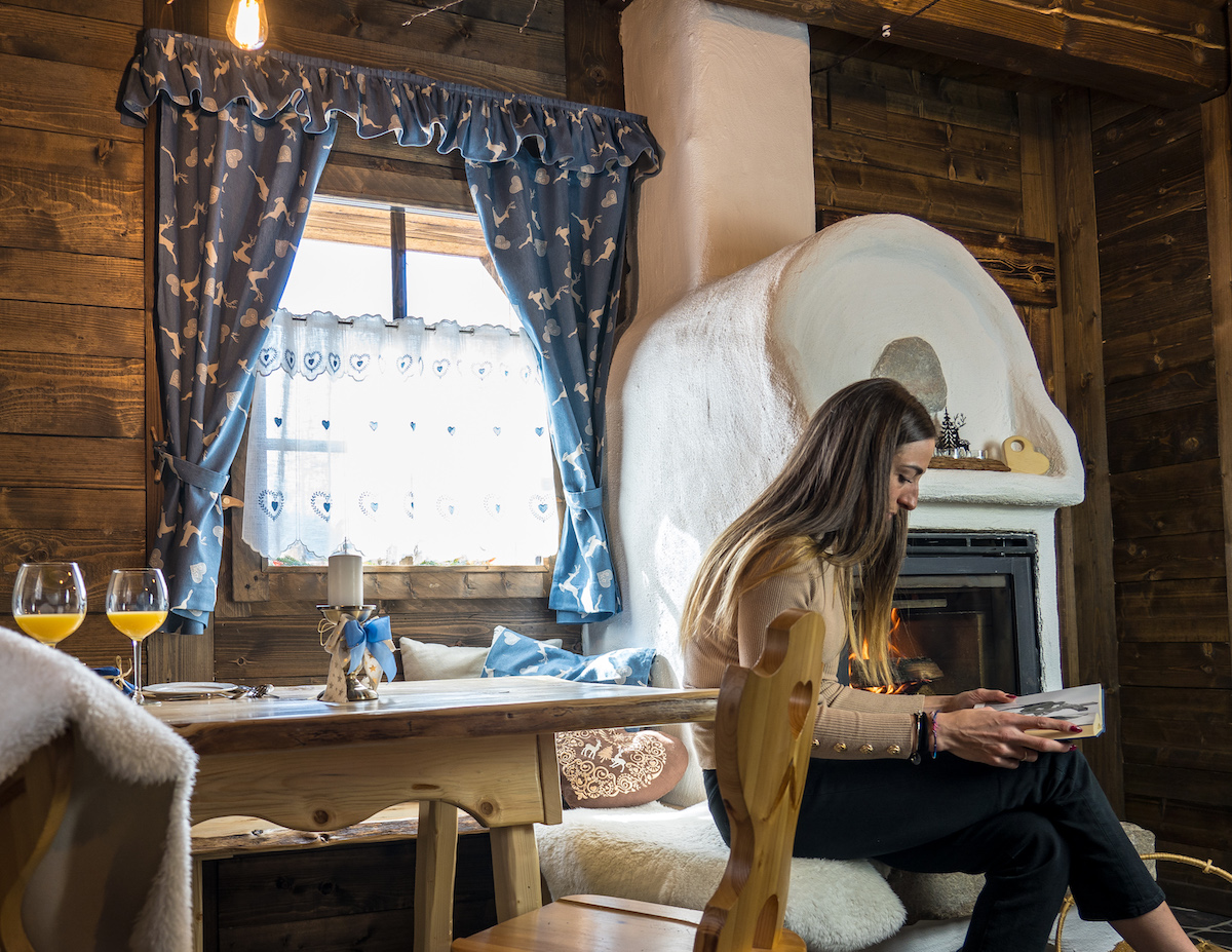 Lisa lo descrive così: «Un luogo dove rallento. Qui faccio cose semplici: una colazione vera, leggere vicino al fuoco, prendere il sole. Qui ritrovo il ritmo della montagna.»