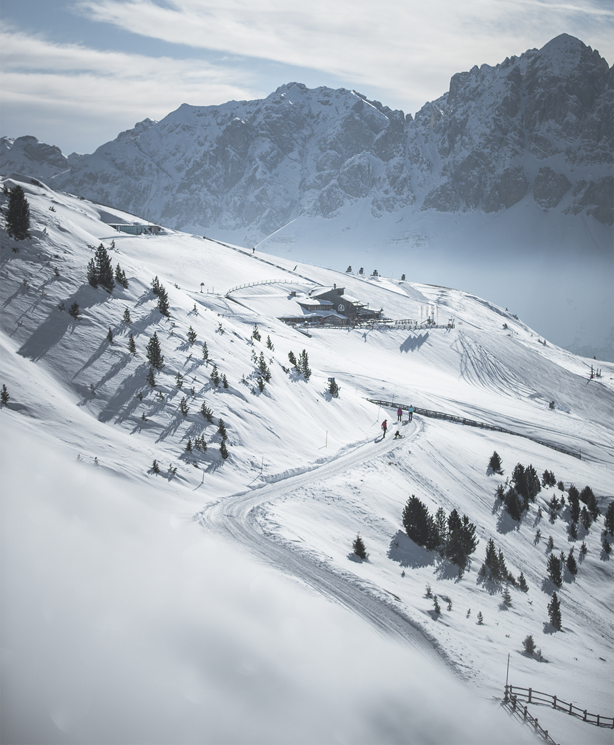 La cabinovia inaugurata nel 2023 ha accorciato le distanze: in pochi minuti porta in quota sciatori, snowboarder, escursionisti, ciaspolatori e slittinisti. Una salita breve, un panorama infinito. Rifugi che accolgono, terrazze che guardano le Odle, l’inverno che dall’alto sembra più nitido. La stagione sciistica aprirà ufficialmente il 5 dicembre 2025.