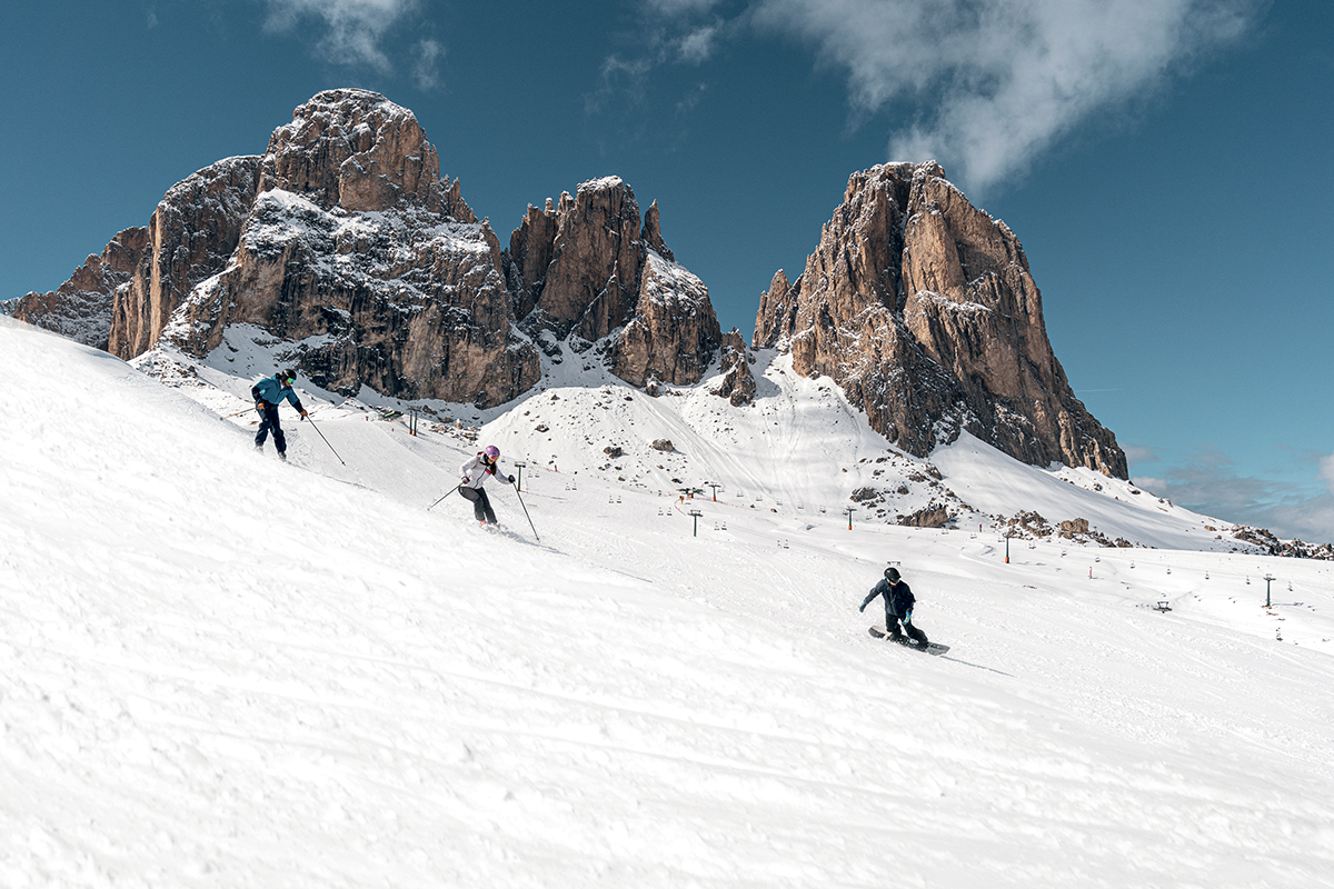 Gli sciatori possono scegliere tra sei grandi skitour: dal celebre Sellaronda, che abbraccia quattro valli e unisce i panorami più iconici delle Dolomiti, al nuovo Skitour Trevalli-Dolomiti, un viaggio tra Lusia e San Pellegrino, fino allo Skitour Panorama, che regala viste spettacolari sulla Marmolada.