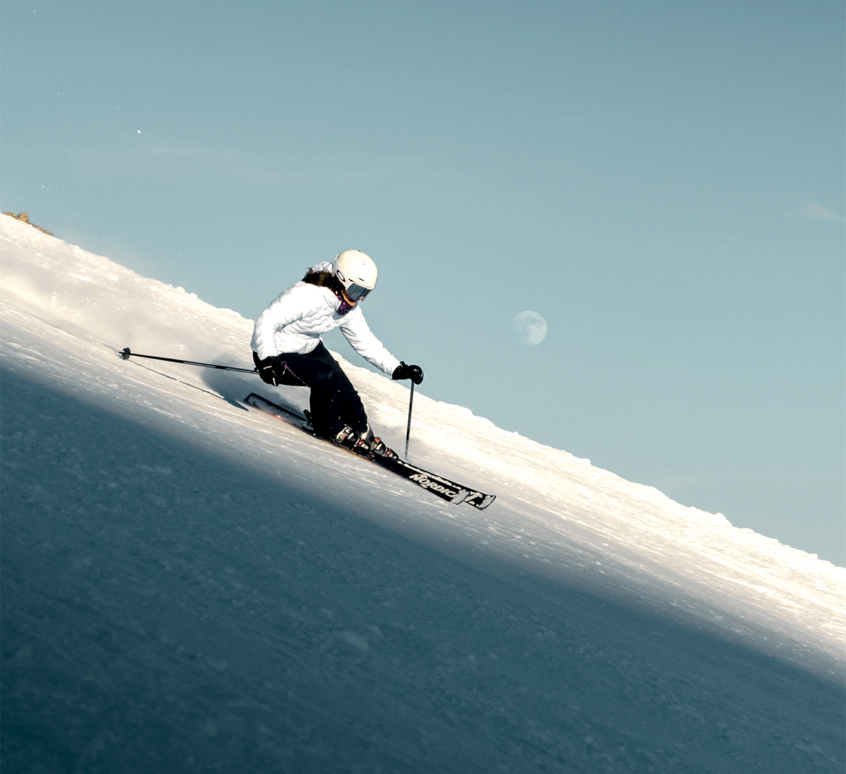 È un paesaggio che cambia con la giornata – blu alle prime luci, dorato a mezzogiorno, rosa la sera – ma resta fedele a sé stesso come una lingua antica. Sciare qui non è solo scendere: è partecipare a un racconto collettivo. Ogni curva disegnata sul manto bianco sembra proseguire quella tracciata il giorno prima da qualcun altro. È la valle che ti accompagna, che ti guarda e ti rimanda il tuo stesso respiro.